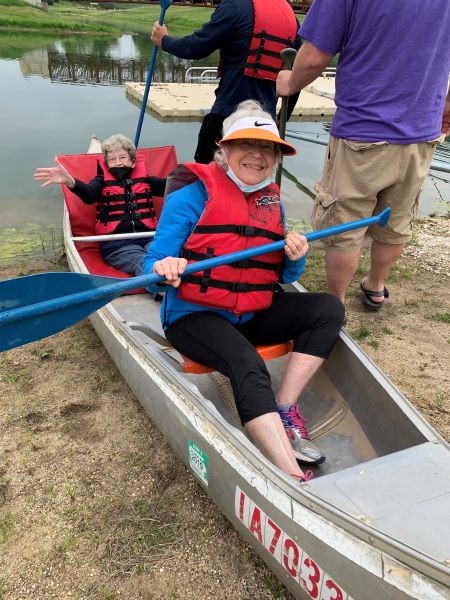 “For example, when we went paddle boating and canoeing, there were several residents with walkers, and one in a wheelchair, whom they could transfer into the boats safely,” says Reed. “It was the same with the ropes course; they have a lift, and can put a sling underneath of a [person], and they’re able to walk them across the ropes course so that they get that same sense of accomplishment, and then send them back on a mini zip line.”