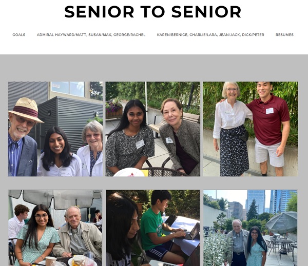 The seven students who imagined and implemented the program are high school seniors from the Tacoma area. The Horizon House resident participants (ranging in age from 75-97) are an accomplished group, including: a retired U.S. Navy admiral; a civil rights activist; two doctors, one a prominent surgeon and professor, the other a medical researcher; a retired research analyst and executive; a businesswoman and farmer; and a businessman with a career in high-tech manufacturing. Linda Purdy, Horizon House spiritual care director, matched the students and elders, driven by the students’ interests stated in statements written before the meetings.