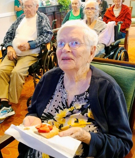 “One of our residents was a mother of four sons,” says Monty Draney, director of life enrichment. “I asked participants if it would be alright for others to observe (eavesdrop) on calls in progress.” He says the residents are a tight-knit group, as are the families, so no one said no to the idea.