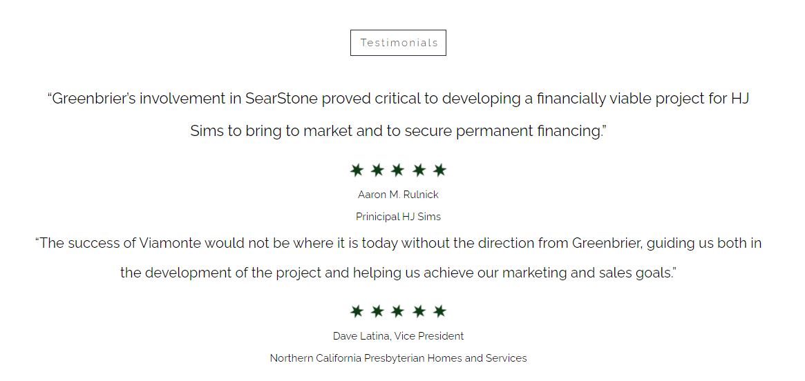 Greenbrier provides comprehensive strategic planning, development, marketing, and management services to sponsors and owners of senior living communities.